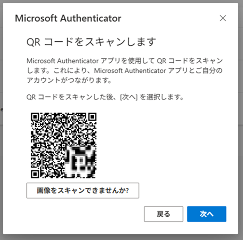 ※あるいは、「操作が必要」となっているアカウントをクリックすることで、自動的にQRコード読み取り画面となるようです。どのように操作しても、別端末にて復旧したいアカウントでAzurePortalにログインしている状態であれば、問題ありません。