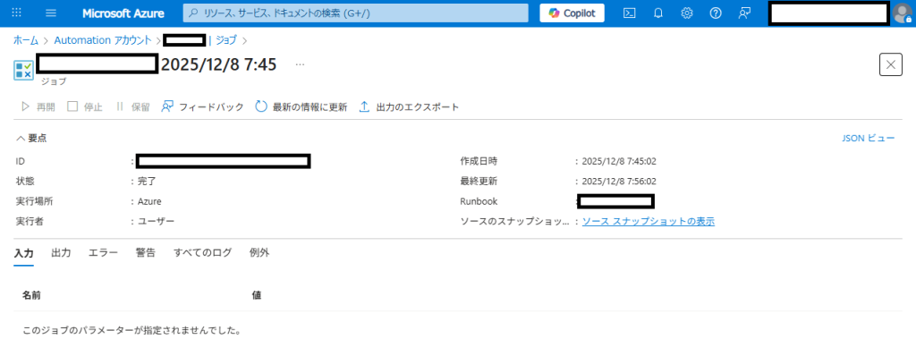 Azure Automationは月間500分までのジョブ実行が無料ですが、ジョブ実行の累計時間はデフォルトで表示されません。