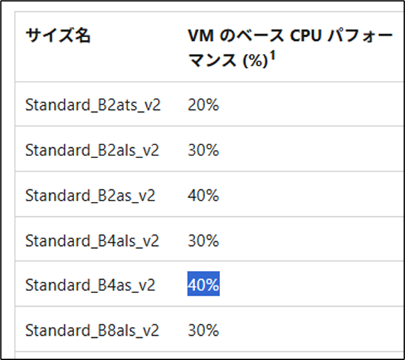Base CPU performance・・・40(%) (上記のMSドキュメント参照)