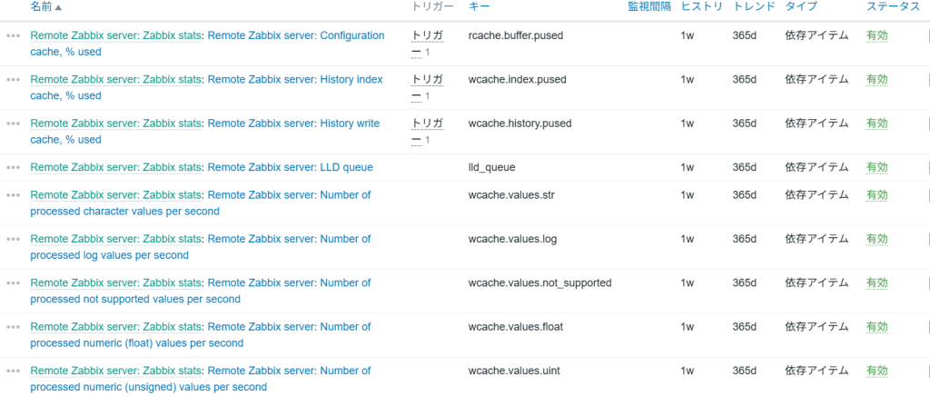 ※Zabbix社提供のzabbix-serverパッケージにはデフォルトで「Template App Remote Zabbix server」というテンプレートがあるためこちらをZabbixサーバ自身の監視設定に追加する