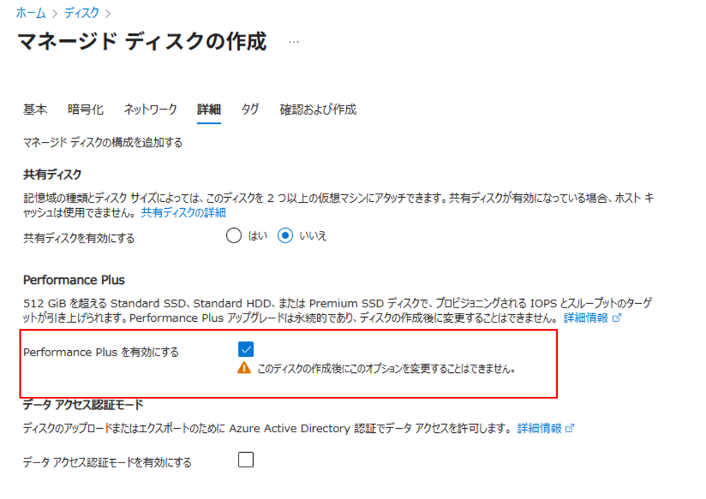 また、この機能はマネージドディスク作成時にしか有効にすることはできません。