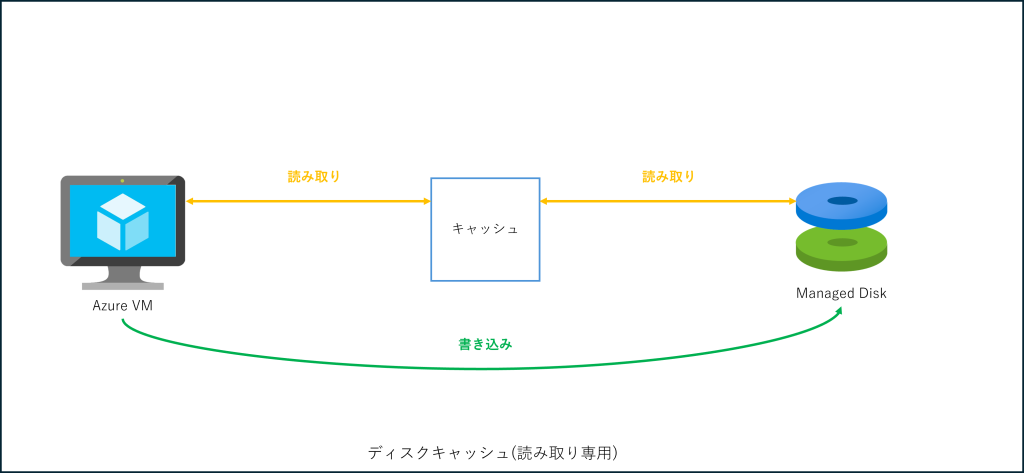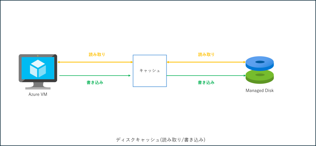 ディスクキャッシュ(“ホストキャッシュ”ともいう)はマネージドディスクへの書き込み/読み込みをキャッシュを介して行う機能です。
