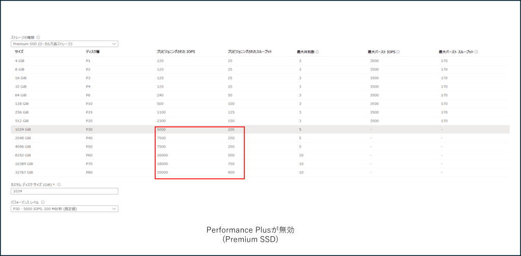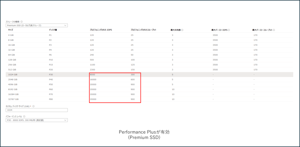 Performance Plusはストレージの種類(SKU)やパフォーマンスレベルの変更なしで性能(IOPSやスループット)を向上させる機能です。