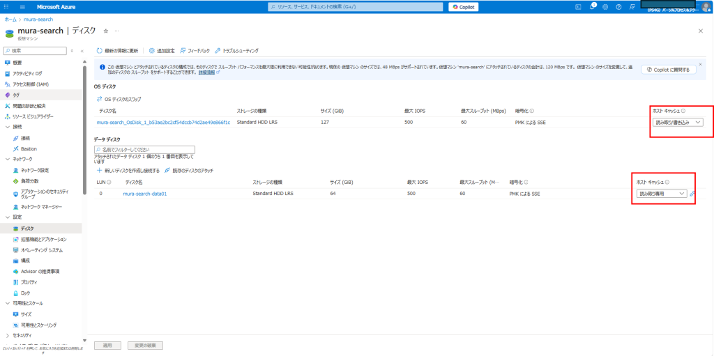 ※Active DirectoryにおいてはSYSVOLやNTDSファイルを格納するディスクについてはホストキャッシュを用いないことが望ましいです。