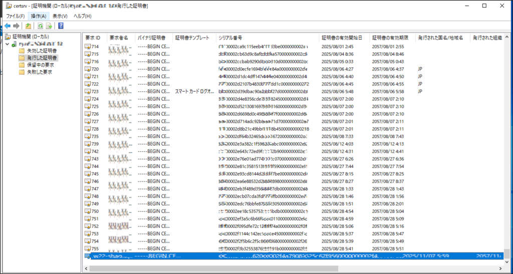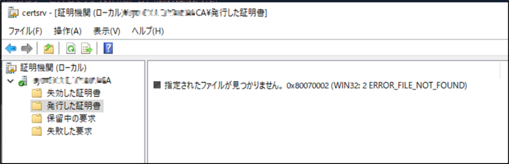 「指定されたファイルが見つかりません」というエラーが消えて、旧CAサーバで発行済みの証明書が表示できれば、成功です。