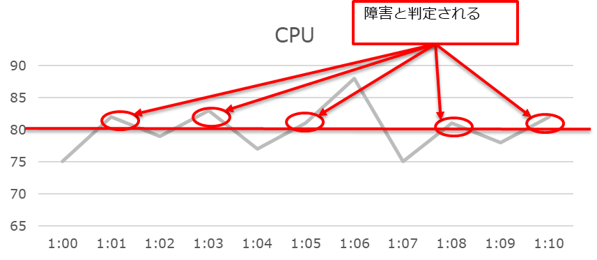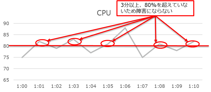 障害設計:3分間、取得値が80%を超えた際に障害とする