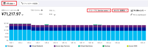 どのサービスが多く利用しているのか?を確認します。本記事のグラフからは「Storage」=ストレージアカウントを多く利用していることが分かります。