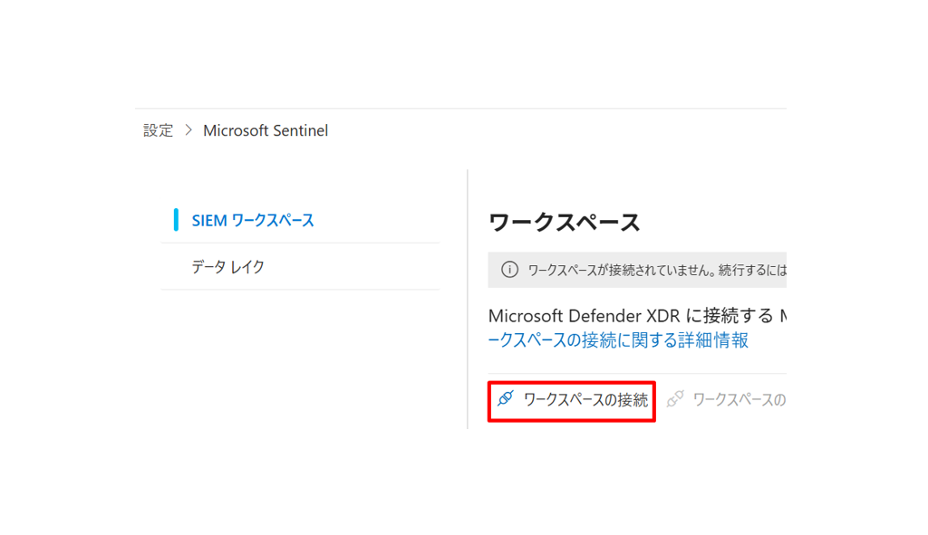 手順:Microsoft Defender > Microsoft Sentinel > SIEMワークスペース > ワークスペースの接続